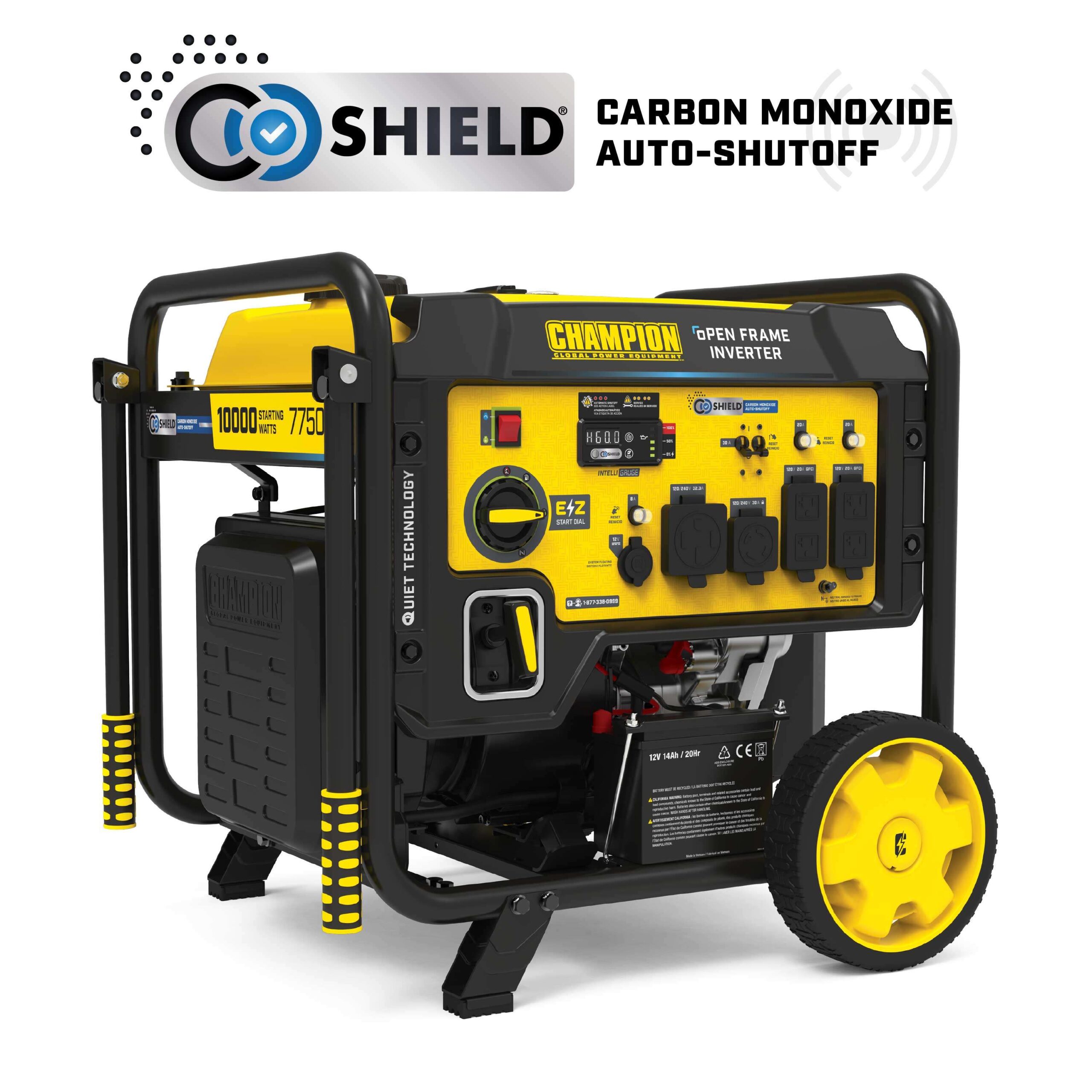 The Champion Power Equipment 10,000-Watt Electric Start Home Backup Portable Open Frame Inverter Generator with Quiet Technology and CO Shield® delivers reliable power for home backup, worksites, or events. With 10,000 starting watts and 7750 running watts, its Clean Power output protects sensitive electronics like laptops or EV chargers. Quiet Technology reduces operating noise to 72 dB(A), up to 50% quieter and 20% lighter than traditional generators, ideal for peaceful use.
